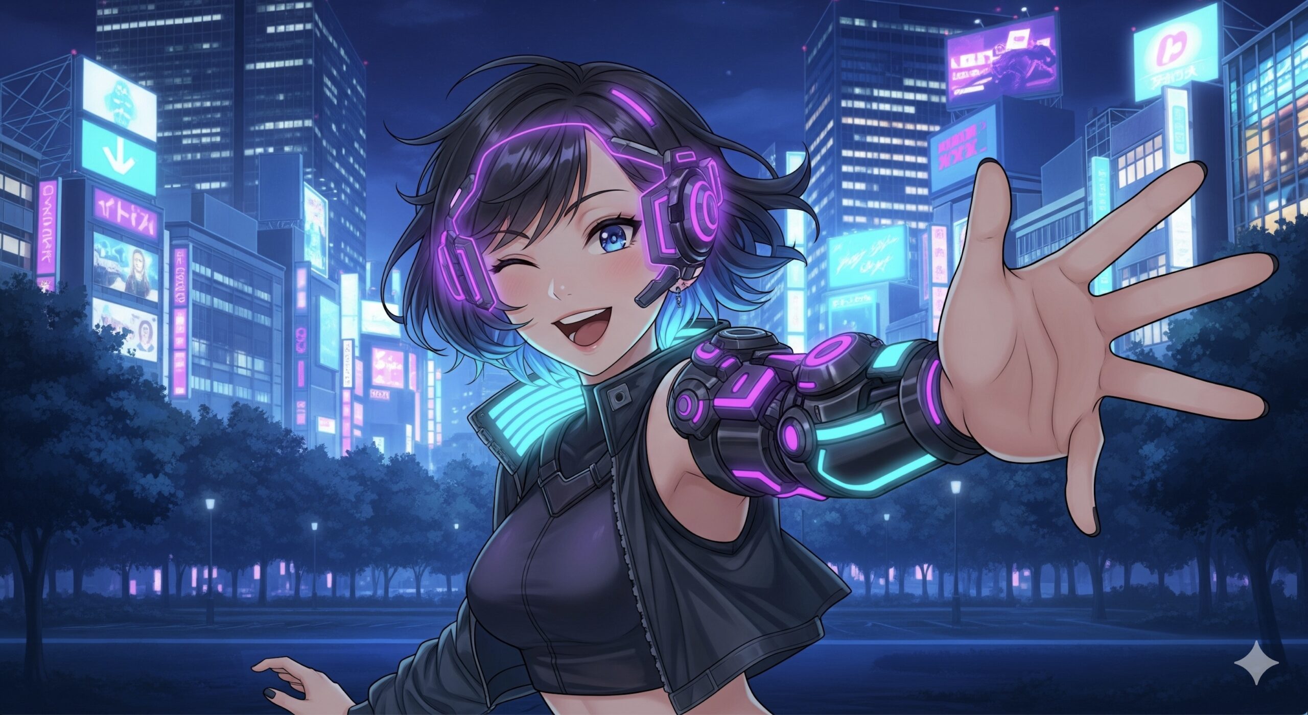 例えば、今回は企画書に沿って地域活性化バトルキャラクター「日比谷マイカ」の記事を書いているとしましょう。 記事内で「日比谷の夜景をバックに戦うマイカ」という描写があれば、Canvasはその文脈を維持したまま、記事の中に画像を挿入してくれます。実際に作った画像がこちら。